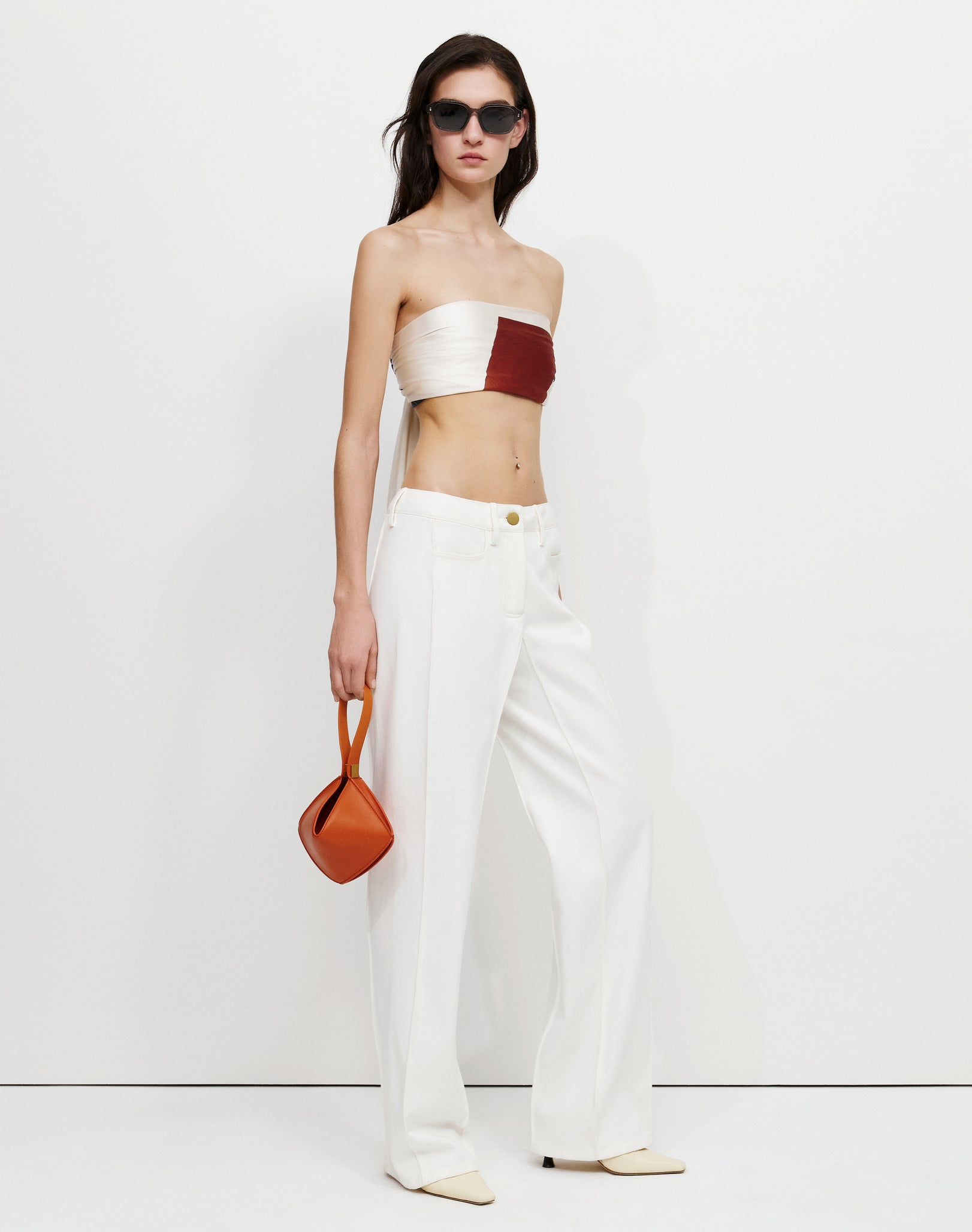 Джинси з напівприталеним прямим силуетом, бічними кишенями та застібкою-блискавкою спереду, з чотирма швами для створення квадратного крою.
