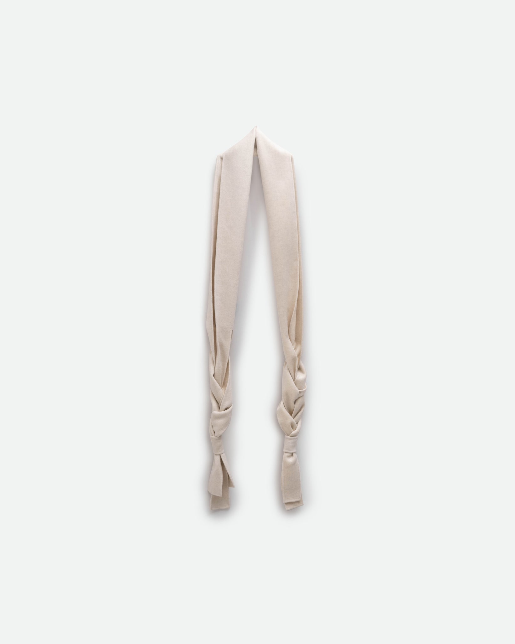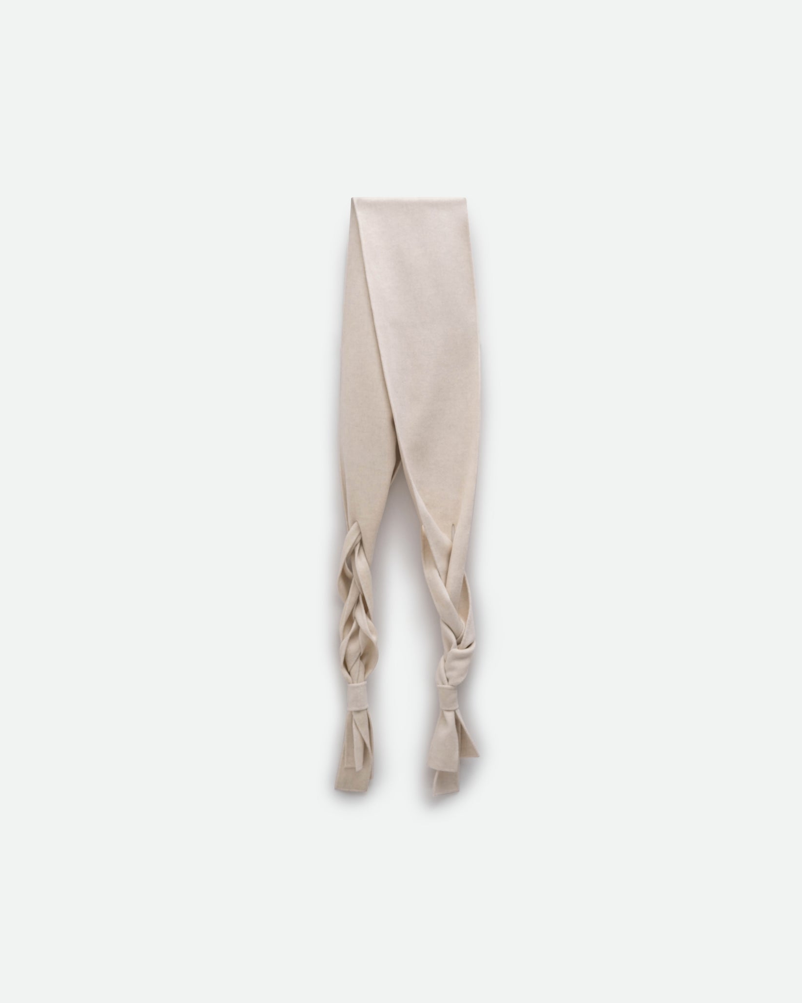 Краї шарфа оздоблені деталлю косички — делікатним відсиланням до української культурної традиції. Коса в українській символіці уособлює силу, зв’язок поколінь та безперервність життя.