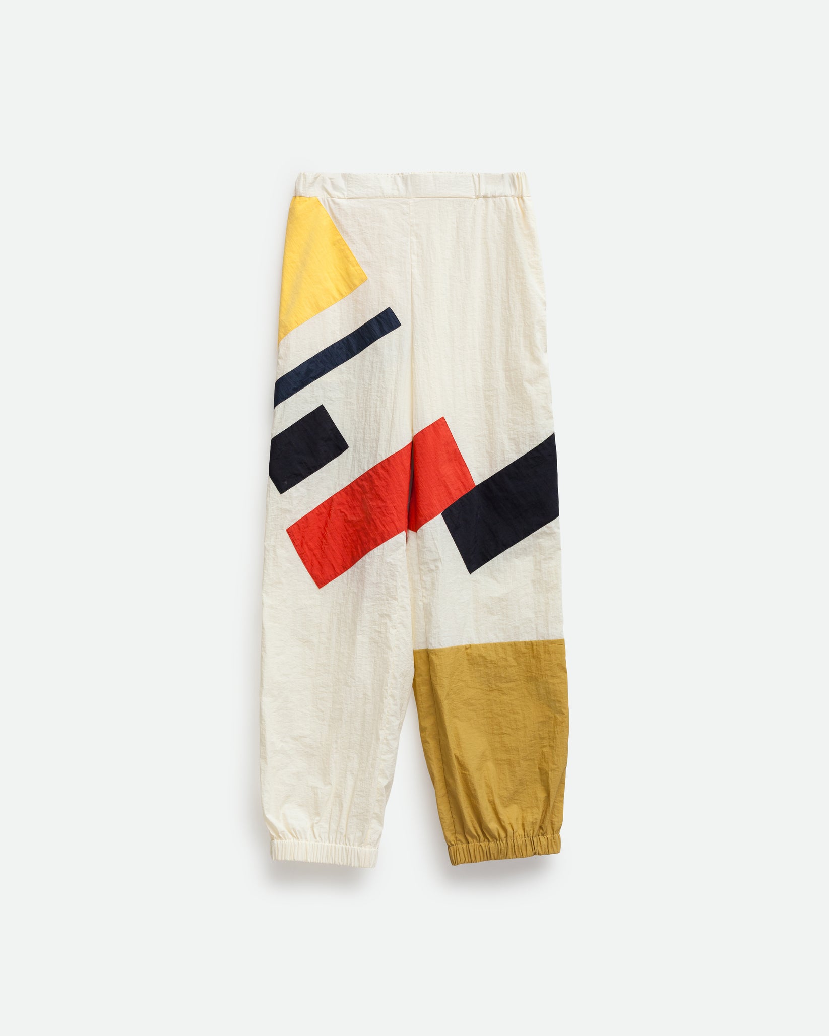 Спортивні штани з напівприталеним кроєм, вільним, звуженим силуетом і характерними квадратними деталями.