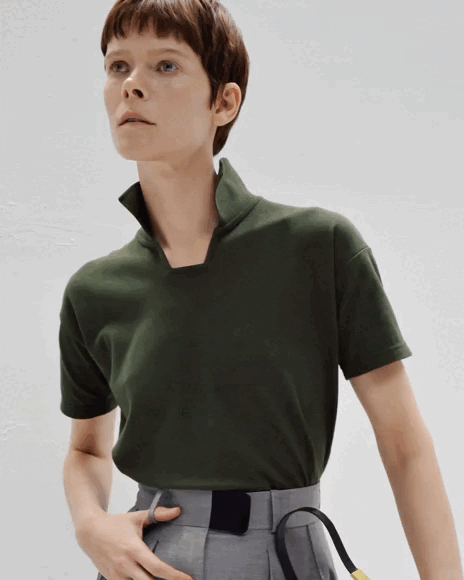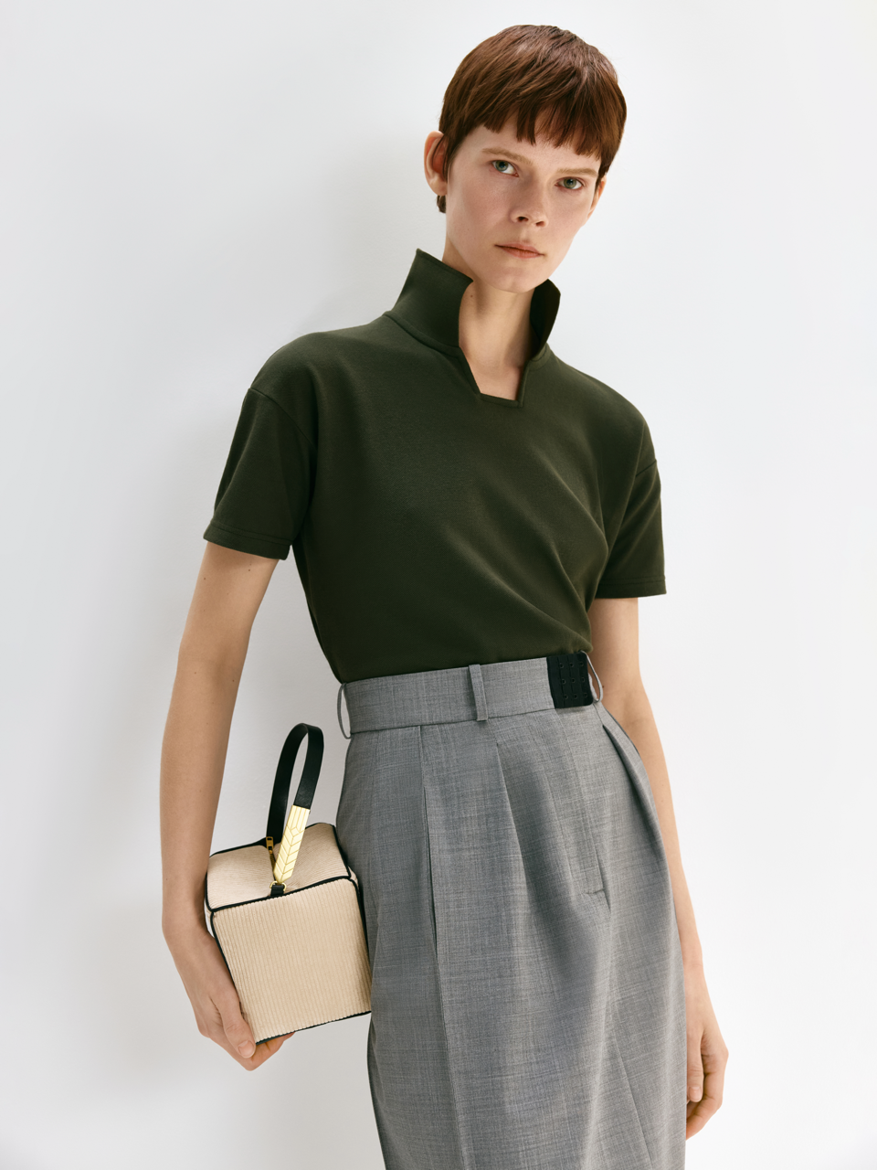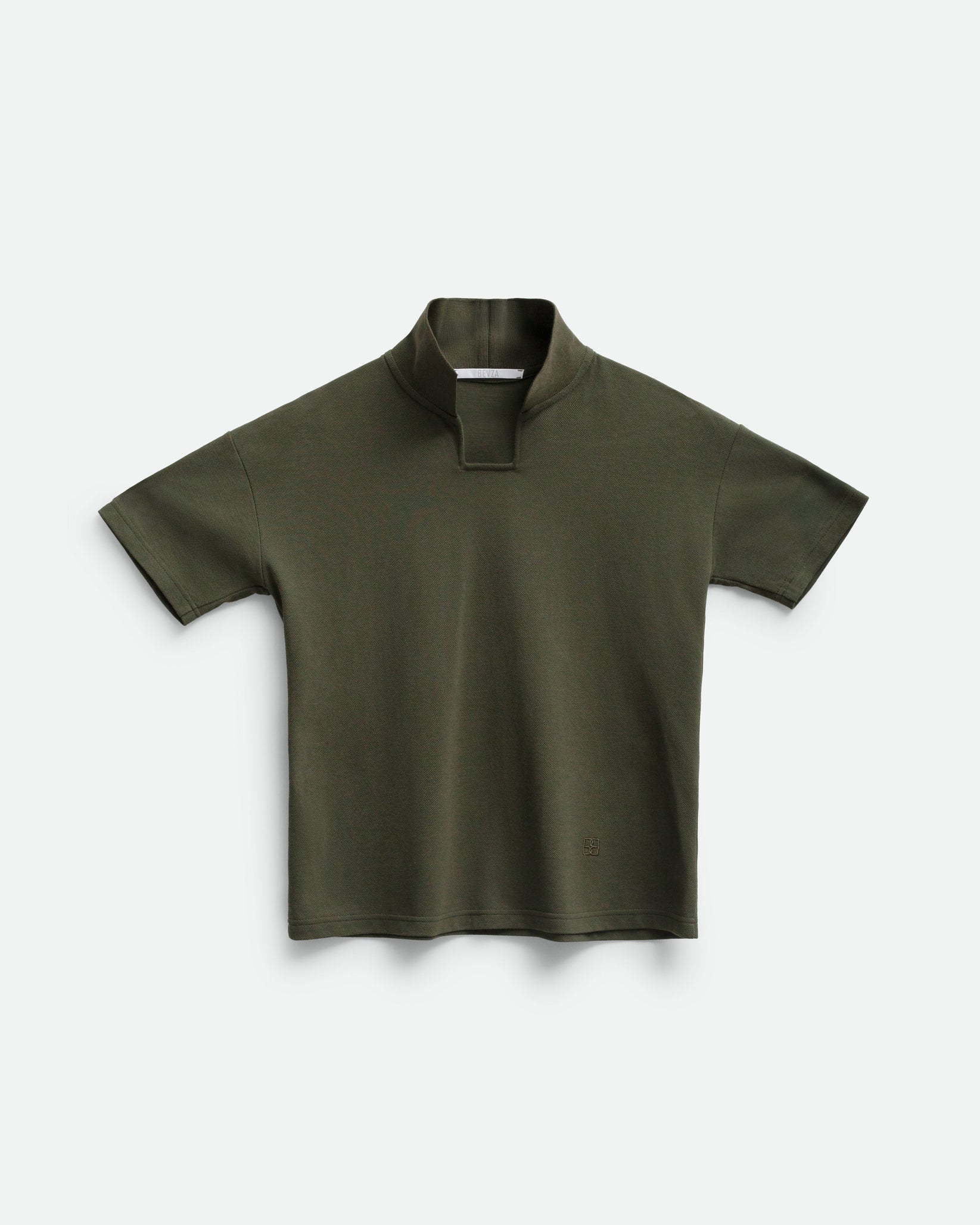 Класична сорочка-поло з коміром-стійкою та квадратним вирізом горловини.