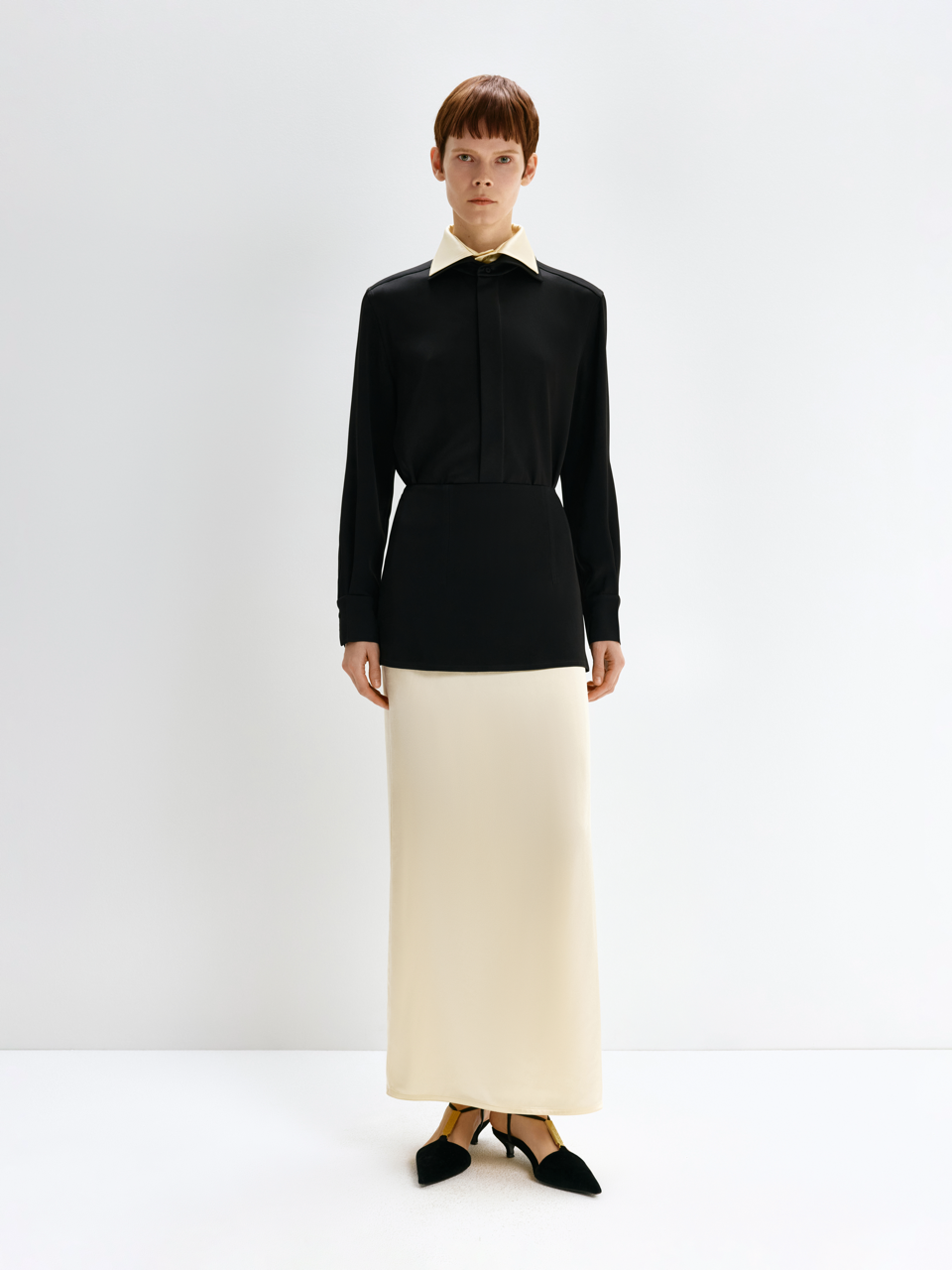 Облягаюча блискуча атласна спідниця з міні-вставкою.
