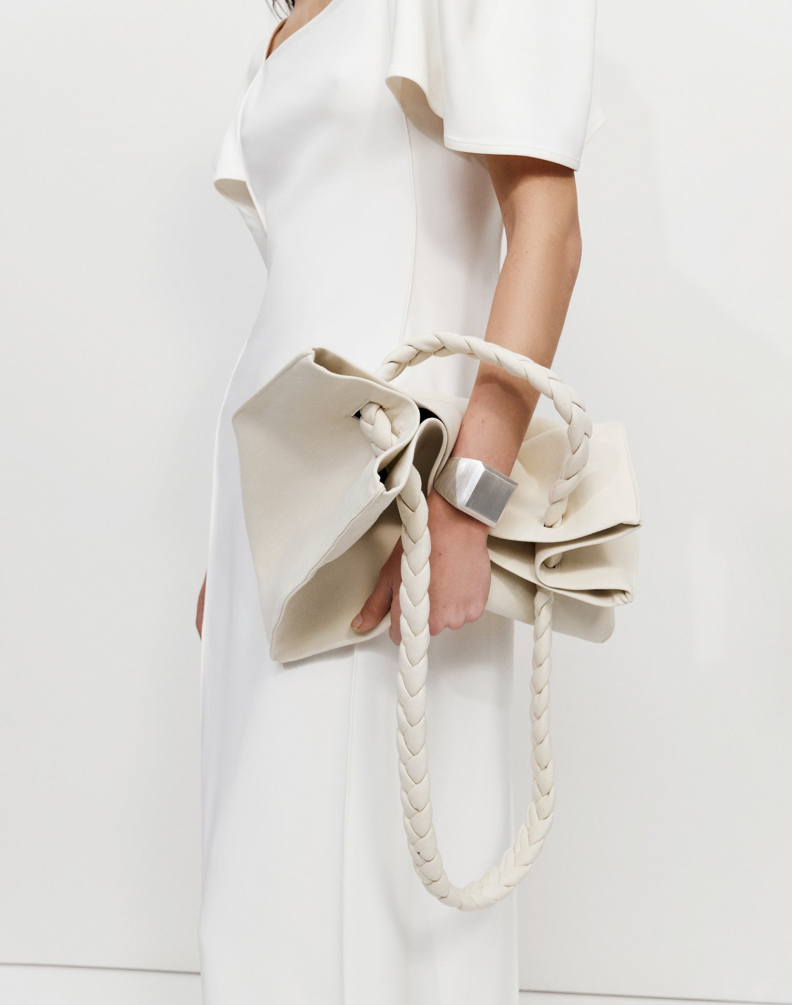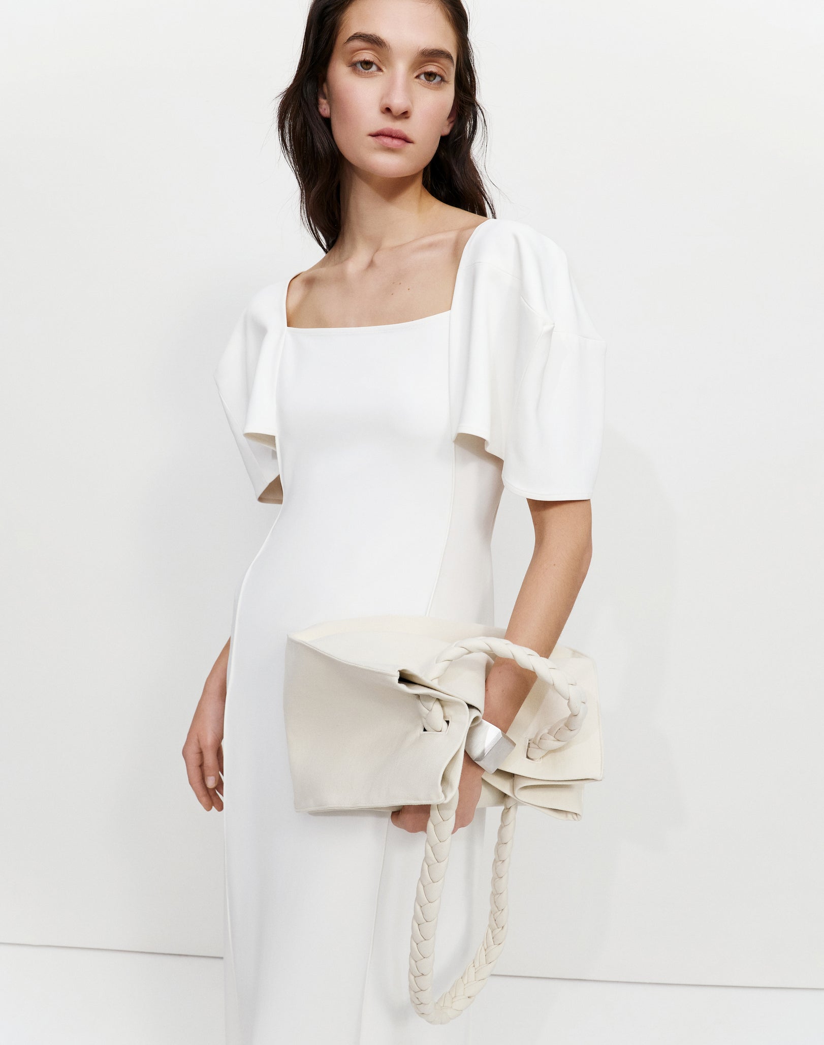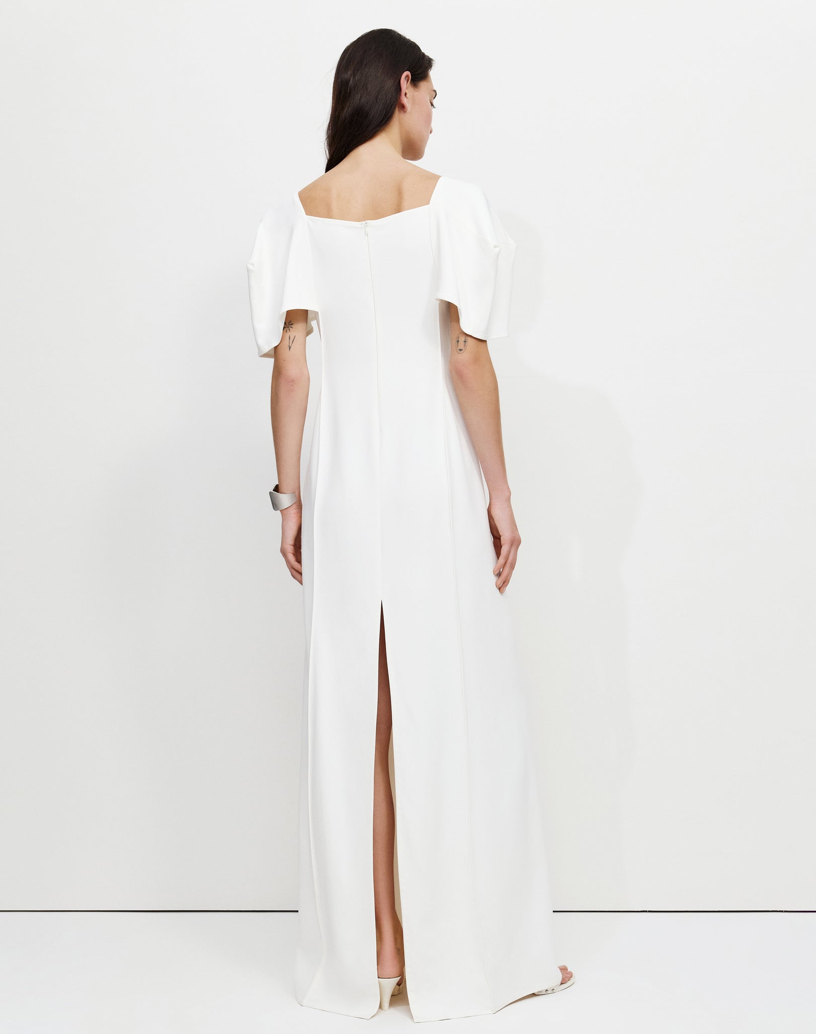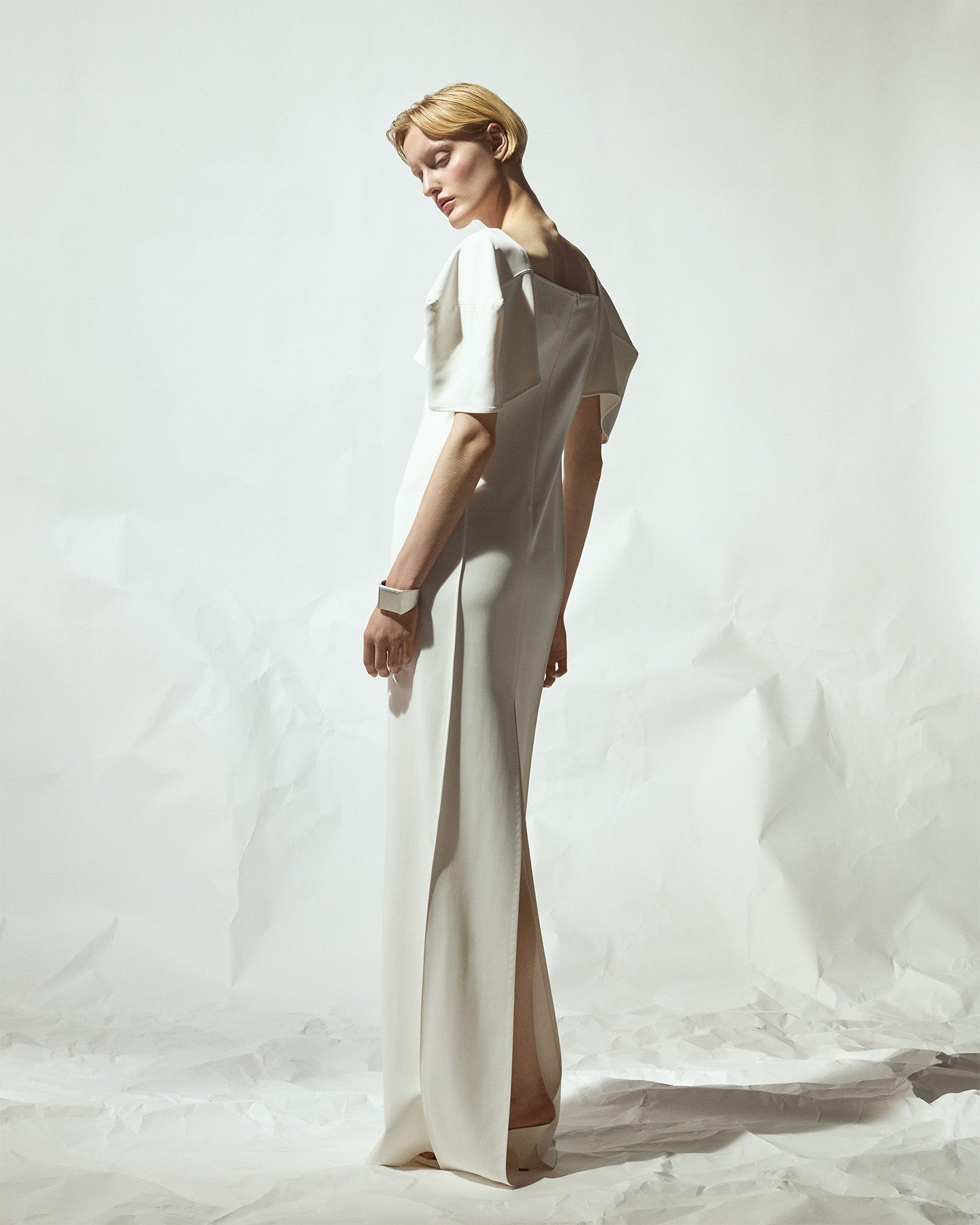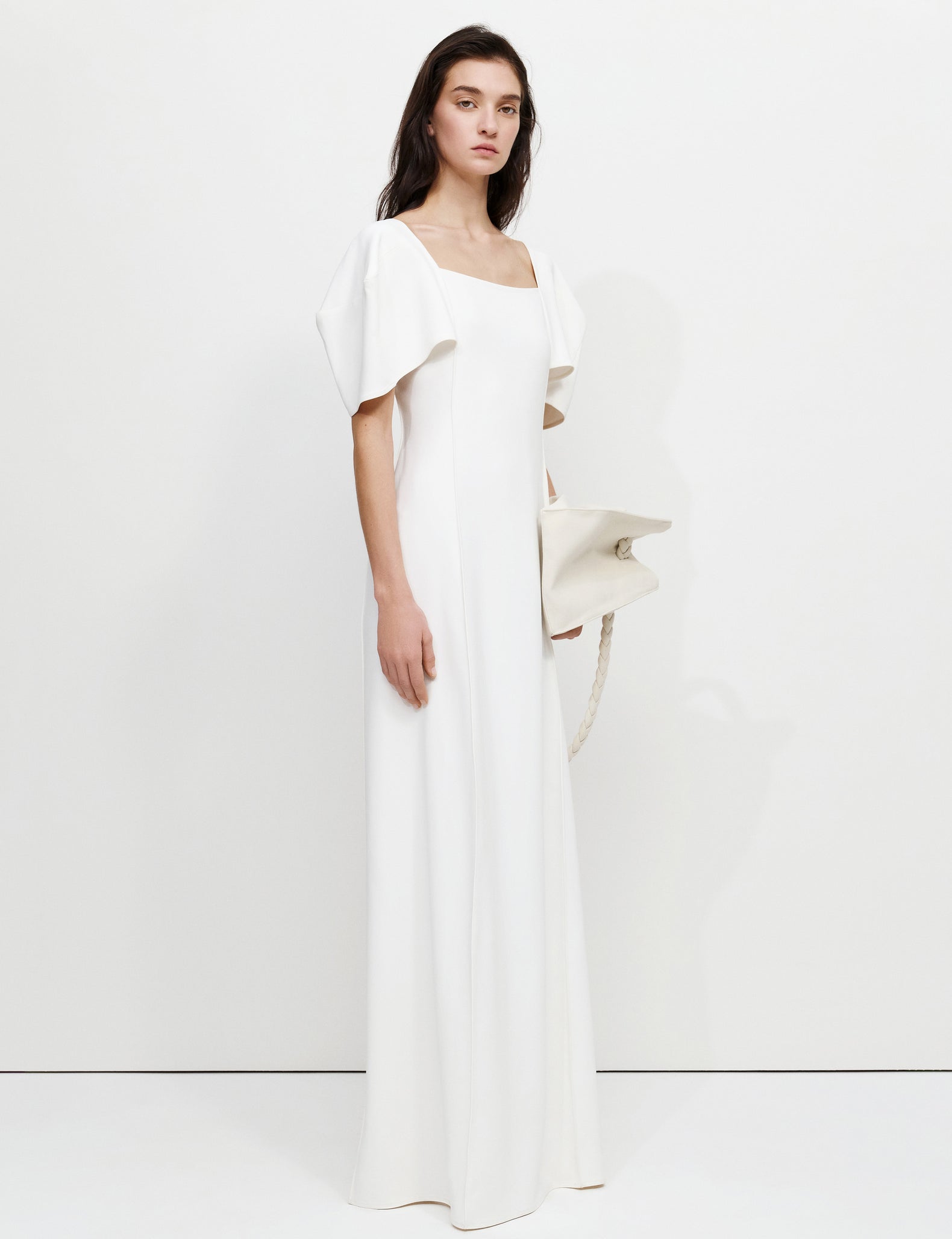 Максі-сукня з об'ємними рукавами у формі куба, з силуетом, що нагадує колону.