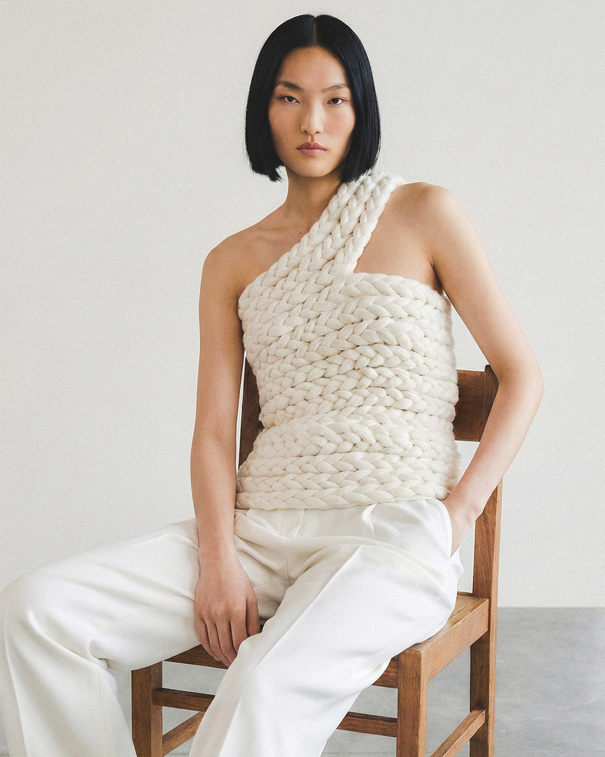 Асиметричний облягаючий топ-коса, що підкреслює контури тіла.